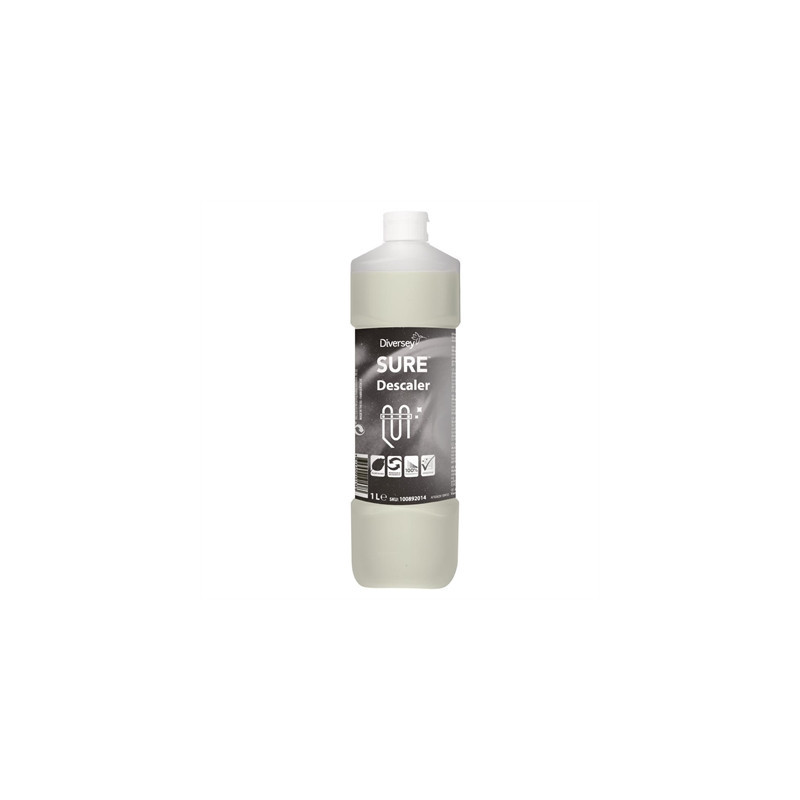 Tackle limescale deposits and take steps towards a more environmentally-friendly operation with this 1Ltr Diversey SURE descaler concentrate bottle. As this descaler is made entirely from renewable, plant-based ingredients, it contains no hazardous materials and is fully biodegradable. This means it won't damage the environment as it breaks down and will ensure your staff are protected against potentially harmful substances when cleaning.