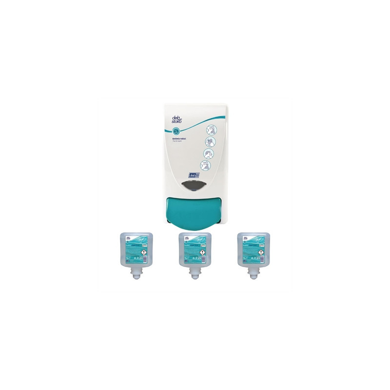 This kit contains the Deb OxyBac soap dispenser and 3 cartridge refills, ideal for high-traffic areas such as washrooms and commercial kitchens. The dispenser features a large push button which can be operated with a hand or elbow, and can be wall-mounted to save space. Soap is delivered in measured shots to ensure maximum cost efficiency.