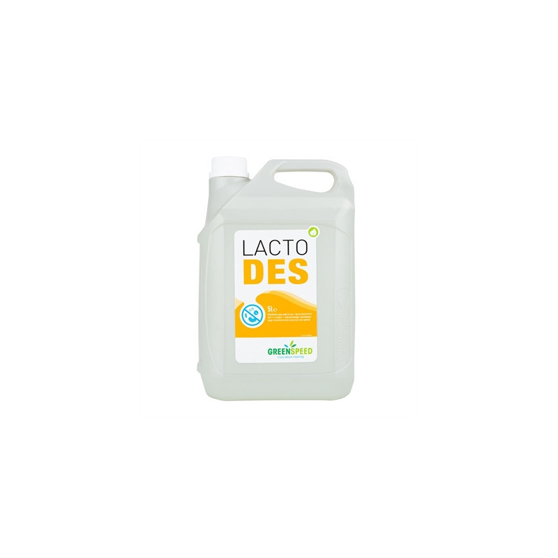 Greenspeed Lacto Des is a powerful disinfectant made with plant-based ingredients. Lacto Des is based on lactic acid, that kills 99.99% of bacteria, yeasts and enveloped viruses in 5 minutes.* The product contains no chlorine or alcohol and can also be applied to food contact surfaces.