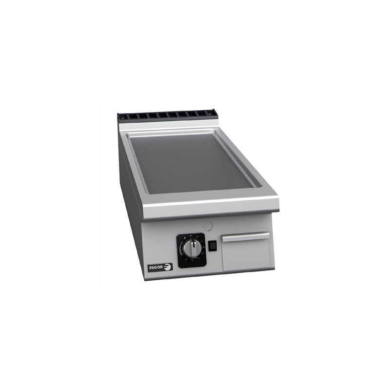 Powerful and reliable, the FT-G905 L Fagor 900 Series countertop smooth plate gas griddle provides the perfect cooking surface for busy professional kitchens. Providing an impressive 9.25kW of power across its 400mm wide, 20mm thick mild steel smooth cooking plate, you get a fast heat-up and rapid recovery times - essential for those busy lunch or dinner hours.