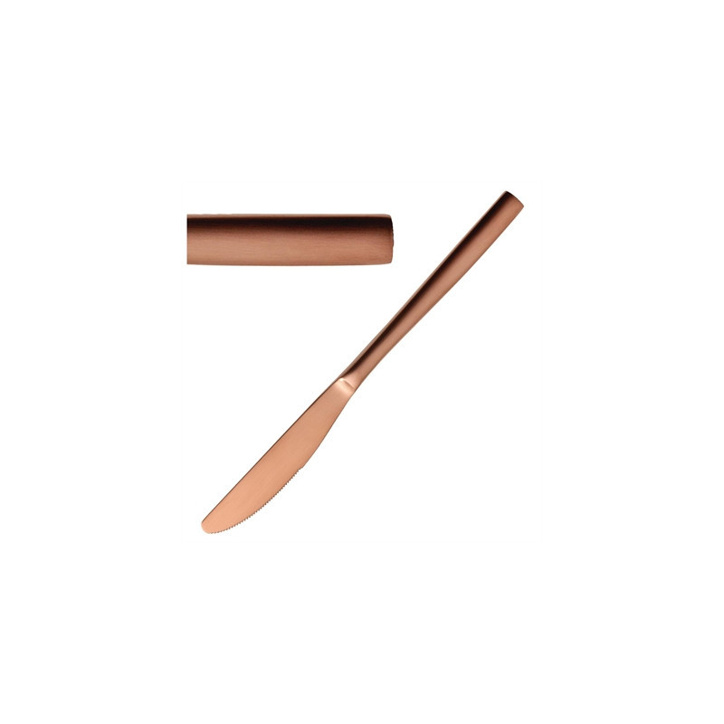 Bring a fresh, modern touch to your dining presentation with this pack of twelve table knives from the Comas BCN Copper collection. Featuring a sleek shape and smooth satin finish, they offer versatility to complement both formal and casual settings. Each knife is made from 18/0 stainless steel, providing excellent strength and stain resistance. A PVD coating ensures a uniform colour across all items, enhancing their resistance and longevity. Plus, they are dishwasher safe, making cleanup quick and easy.