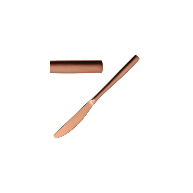 Bring a fresh, modern touch to your dining presentation with this pack of twelve dessert knives from the Comas BCN Copper collection. Featuring a sleek shape and smooth satin finish, they offer versatility to complement both formal and casual settings. Each knife is made from 18/0 stainless steel, providing excellent strength and stain resistance. A PVD coating ensures a uniform colour across all items, enhancing their resistance and longevity. Plus, they are dishwasher safe, making cleanup quick and easy.
