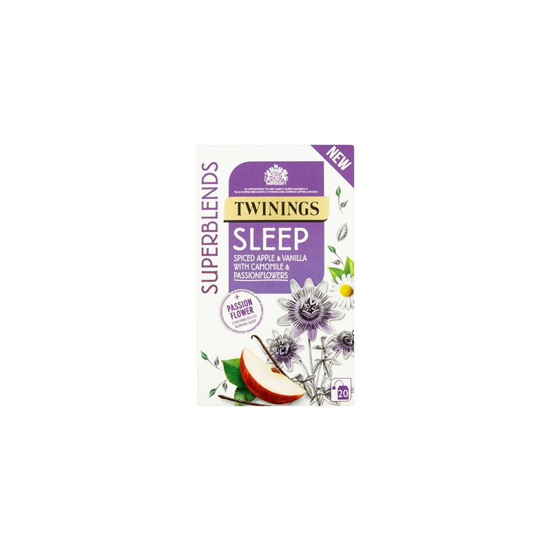 Switch off and discover the blend of your dreams with these Twinings Superblends Sleep tea bags. This delicious blend combining camomile, passionflowers, apple and vanilla flavourings is smooth and warming, making it the perfect part of your bedtime routine. Take your last sip and sink your head into a soft pillow.