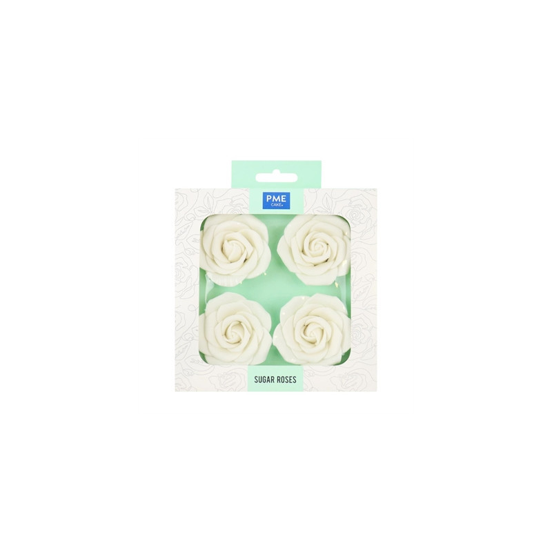 Elevate your baked creations with PME's delicately handcrafted 62mm white sugar roses. These pack of four pre-made roses not only save you a significant amount of time and effort over making them by hand, but they also taste great too. Intricately patterned and delicately shaped, the roses can be coloured with lustre sprays, powder colours and airbrush colours to create stunning effects. They come supplied in a beautifully packaged, decorative box.