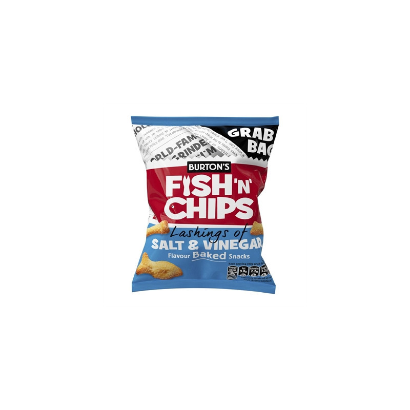 Burton's Fish 'n' Chips Salt & Vinegar are a delicious snack time treat, with each bag full of irresistible salt and vinegar flavoured mini baked snack biscuits. Originally from the 80's, these tasty fish and chip shaped biscuits are the perfect snack to munch on when hunger strikes.