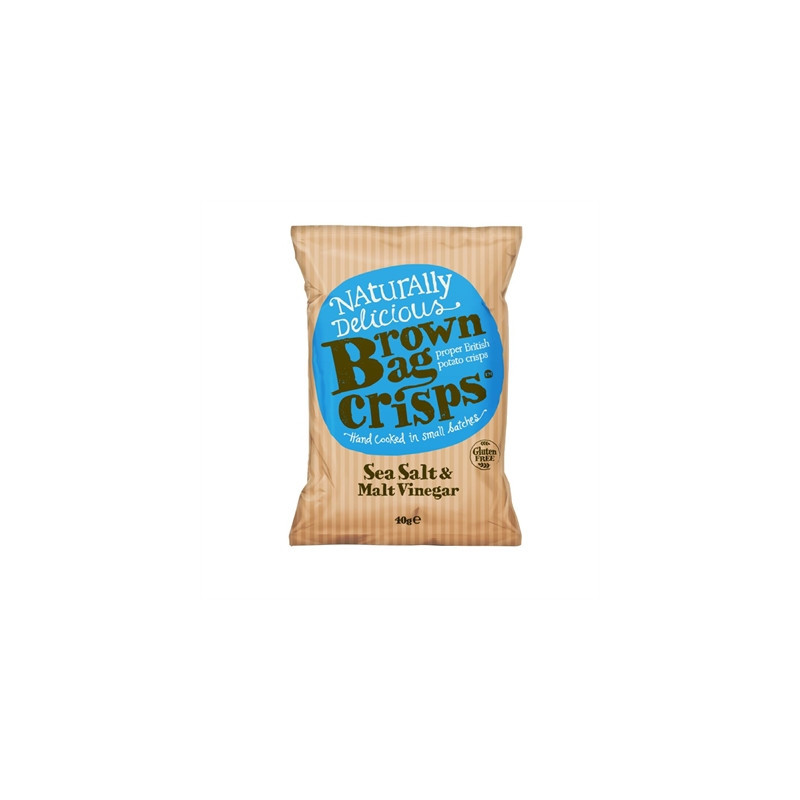 Zingy and moreish, these Brown Bag sea salt and malt vinegar flavoured hand-cooked potato crisps are made with British potatoes sprinkled with English malt vinegar and sea salt seasoning. They are gluten free and suitable for vegetarians.