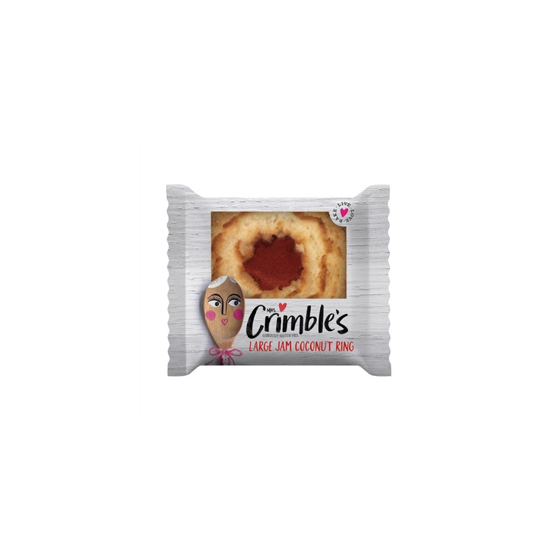 These Mrs Crimble's Gluten Free Individual Jam Coconut Rings are a coconut ring with a moist jam centre. Individually wrapped for convenience, the cakes are perfect for on-the-go snacking.