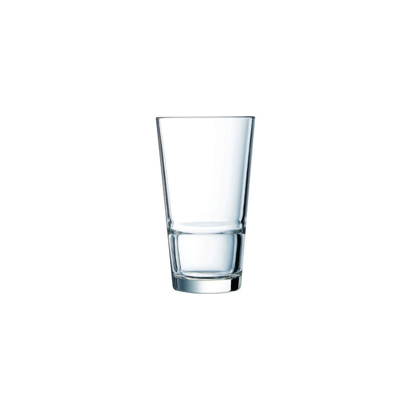 Perfect for serving beer, cocktails and juices, these Arcoroc Stack Up hiball glasses feature a convenient space-saving stackable design. Made from fully tempered glass, the 400ml glasses are extra resistant to shock and impact, and if broken are designed to break into small blunt pieces for added safety. They are also dishwasher safe, allowing for a quick turnaround of fresh glassware during service.