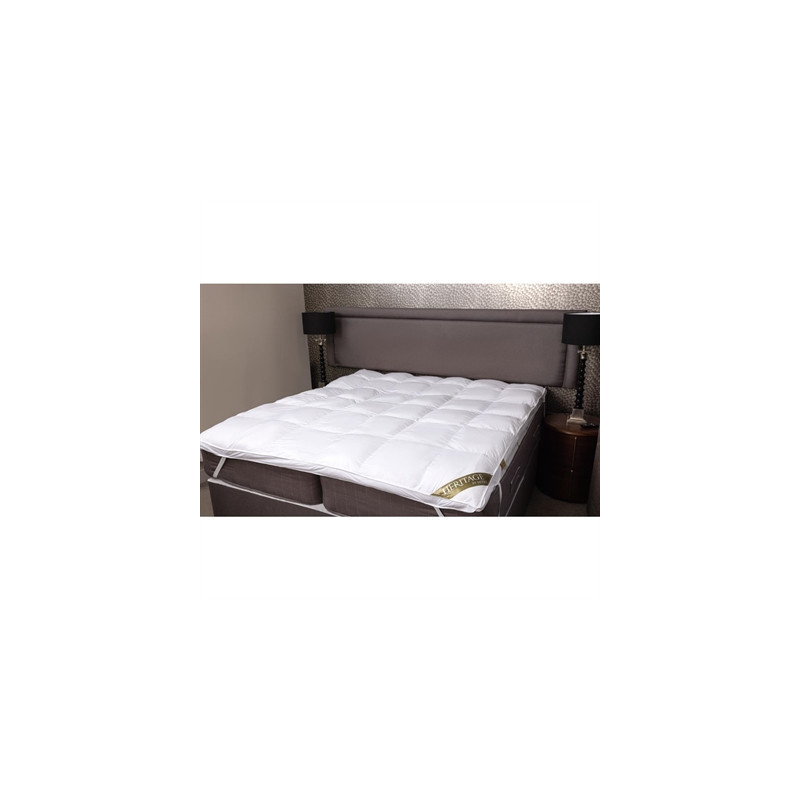 Our most luxurious mattress topper, filled with siliconised ball fibre in a 100% cotton cambric cover for optimum comfort. The Duke mattress topper has a special box construction to prevent the filling from moving around. Attaches to the mattress via elastic straps at each corner. Box construction may require some manipulation. Filling: siliconised ball fibre. Fitting: elasticated bands. Cover: 100% cotton cambric. Weight: 1,300g/m².