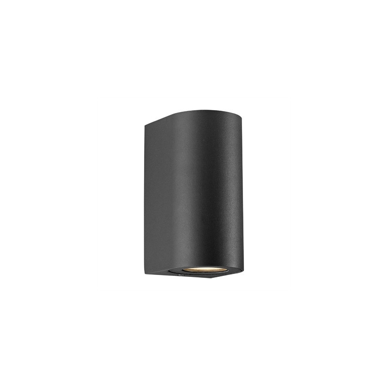 The Canto Maxi 2 features a dual light output, casting both upward and downward beams to create a balanced and inviting illumination. It is designed for use with two GU10 bulbs (not included), with a maximum wattage of 28W per bulb. The fixture is IP44 rated, providing protection against splashes of water and making it suitable for outdoor use in sheltered areas such as entrances, patios, and balconies.