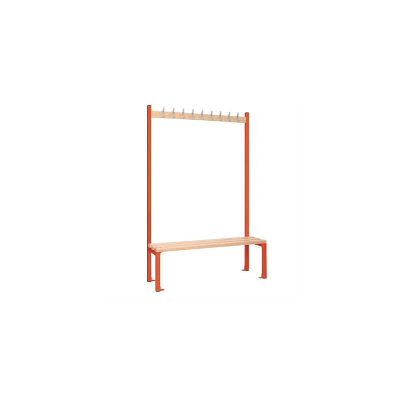 This single-sided seating island is an ideal choice for various settings such as schools, gyms and staff changing rooms. Constructed with durability in mind, its robust steel framework is powder-coated in a bright red shade, ensuring both strength and a visually appealing design. The slatted seat, crafted from hardwearing beech wood, offers comfort and support, making it the perfect furniture piece for any changing space.