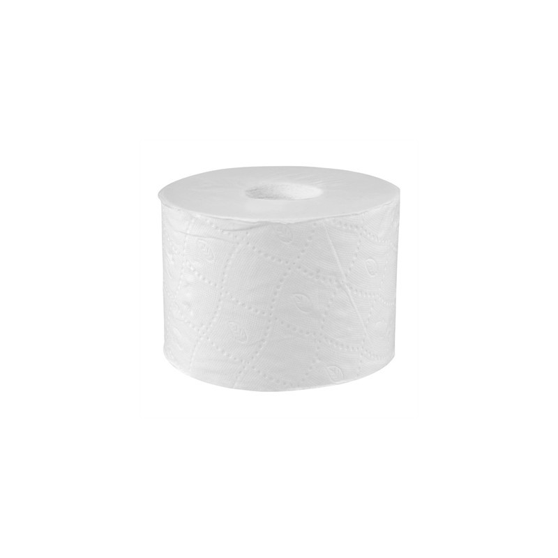 Tork OptiServe® Coreless is a high-capacity coreless toilet paper system for facilities where efficiency, sustainability and providing a great experience are key. High capacity, reduced storage space, and certified easy to use dispensers make it a better alternative to conventional toilet paper and jumbo rolls. These 2-ply tubeless toilet paper rolls fit a wide range of compatible coreless toilet paper dispensers to meet different washroom needs, so the same compact toilet roll refills can be used across the facility. Compared to conventional toilet paper, Tork OptiServe® coreless rolls hold three times more paper, with no core and no wrap for less waste.